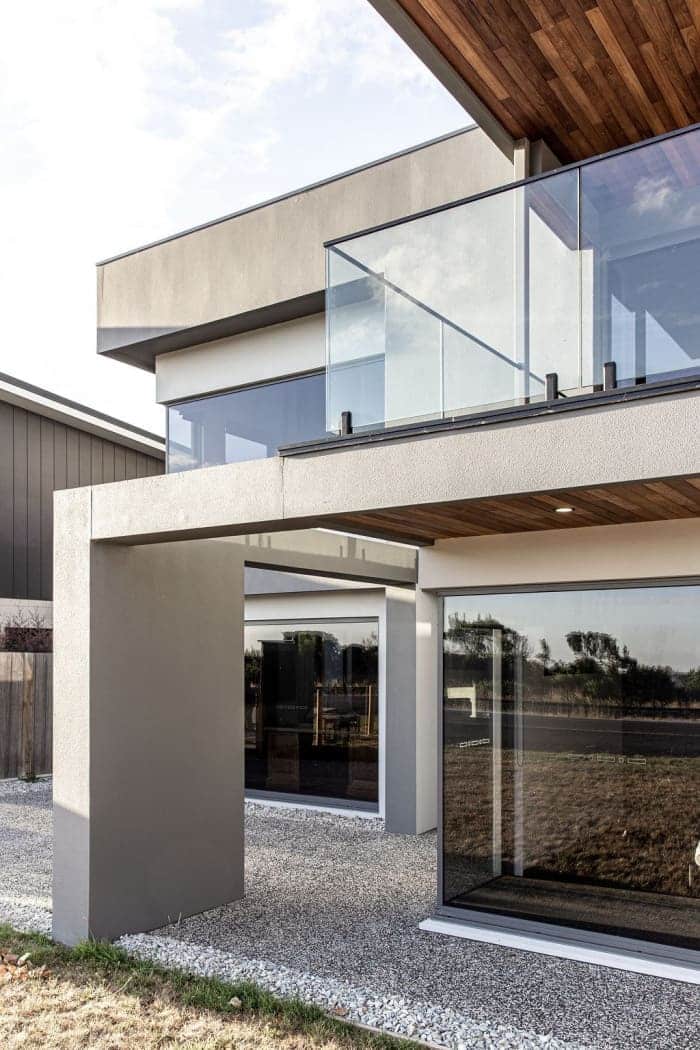 The exterior combines modern styling with elegant accents. Tasmanian Blackwood features from the moment you enter this home, paired with an all-texture render for the perfect balance. In addition, we have used exposed aggregate concrete for the driveways and entry paving to match the beauty of its location.