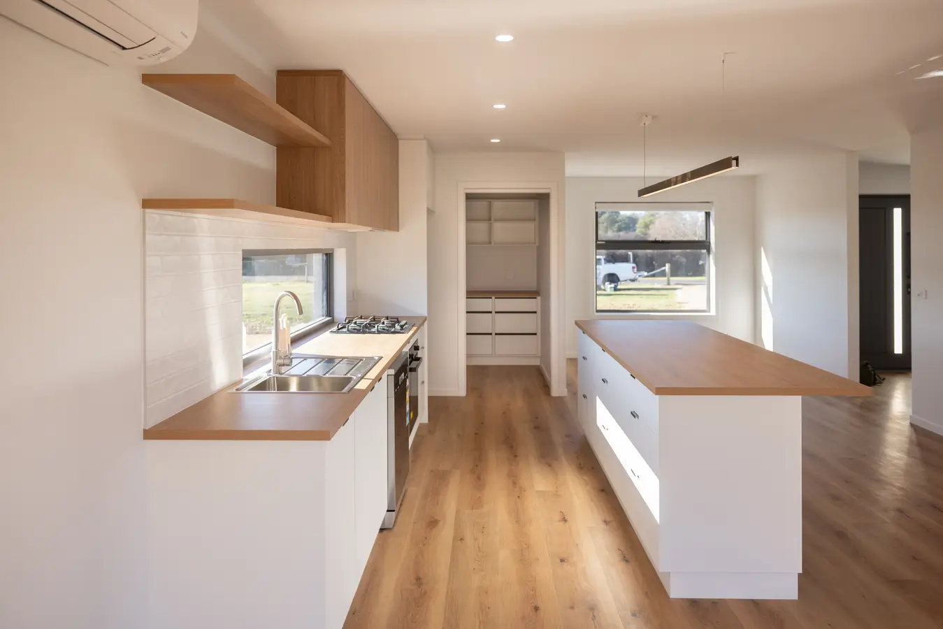 Inside, the layout blends family functionality with elegant design touches: a generous kitchen at the heart of the home, raked ceilings that draw in the light, and seamless indoor-outdoor flow that makes entertaining easy.